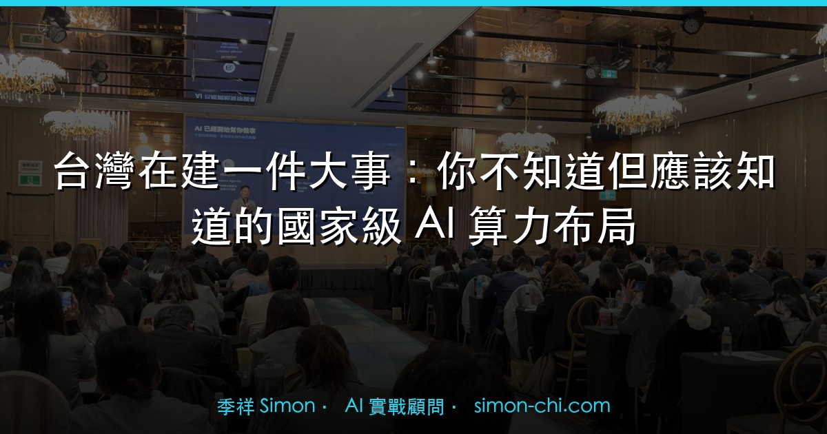 這篇文章要談的是一個正在發生但很少被一般企業主討論的事:台灣的國家級 AI 基礎建設,以及它對你做 AI 的環境意味著什麼。