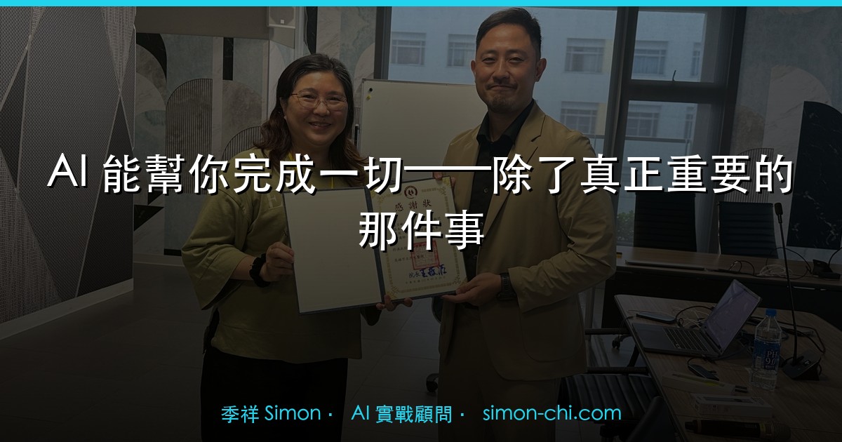 這個問題不是反科技的。我做的是 AI 顧問,我每天在幫企業用 AI 做更多事。但正因為如此,我覺得這個問題更值得認真回答,而不是迴避。